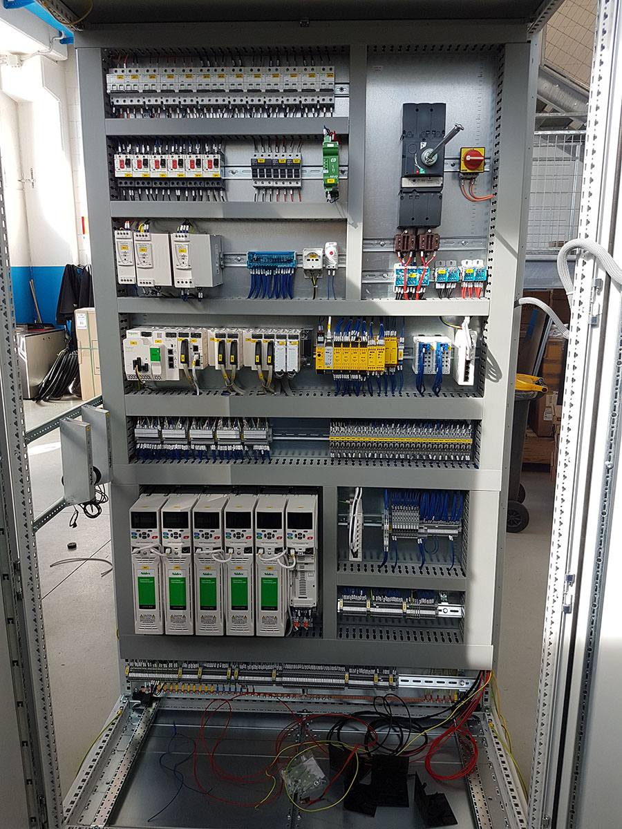La produzione segue procedure standardizzate e collaudate: l’attività inizia dagli schemi elettrici di dettaglio, approvati dal cliente; procediamo all’approvvigionamento dei materiali necessari all’assemblaggio e il successivo cablaggio.